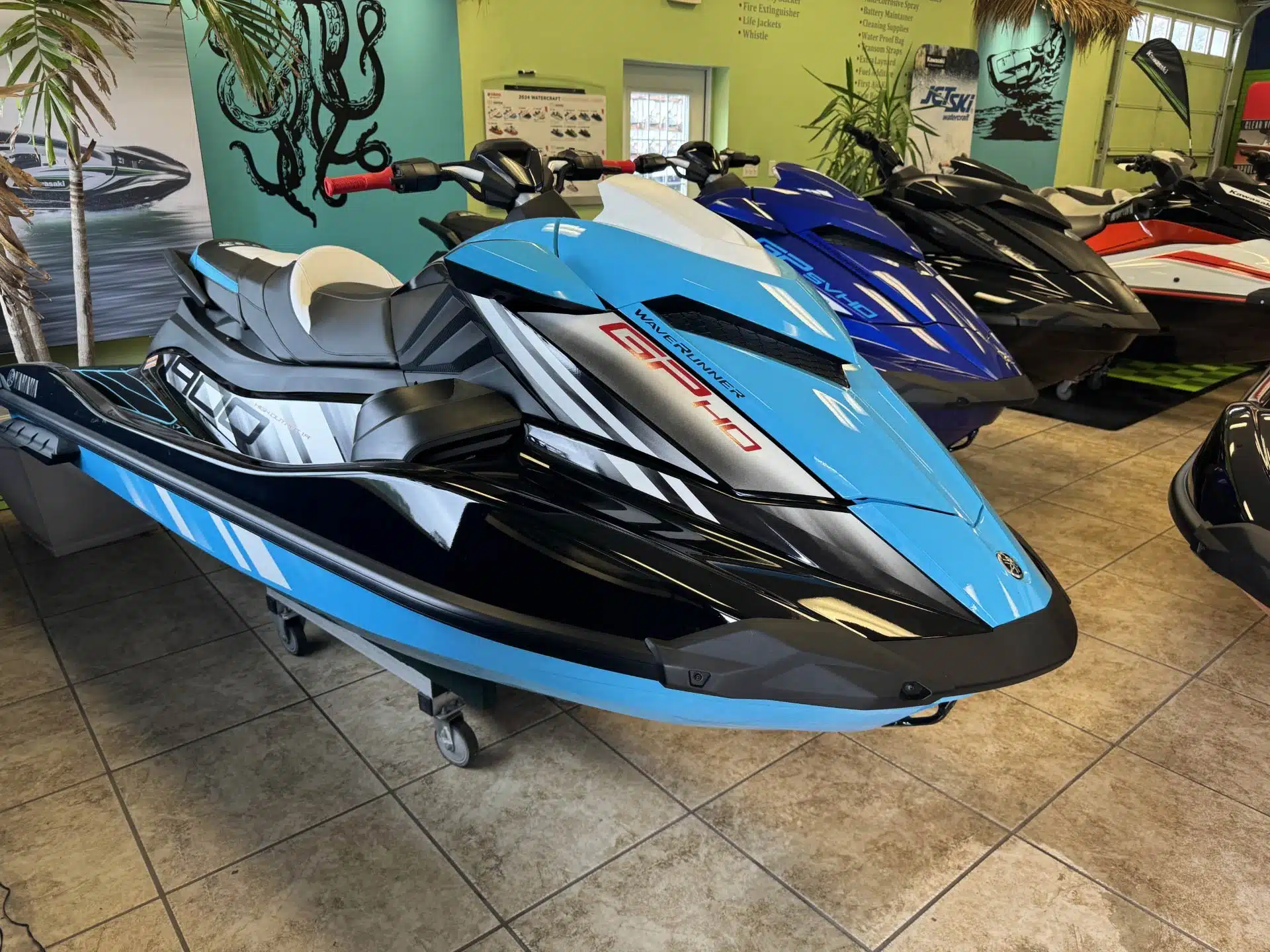 This 2024 Yamaha GP HO has 4-cylinder, 4-stroke, Super Vortex High Output Yamaha Marine Engines. It also offers the perfect blend of power plus lightweight along with features including integrated speakers, race proven hull and deck design, and better acceleration and less cavitation in choppy water conditions with its high performance intake grate and jet pump. This unit comes with a factory-installed audio system that sounds as good as it looks, and a free Waverunner start-up kit.ย