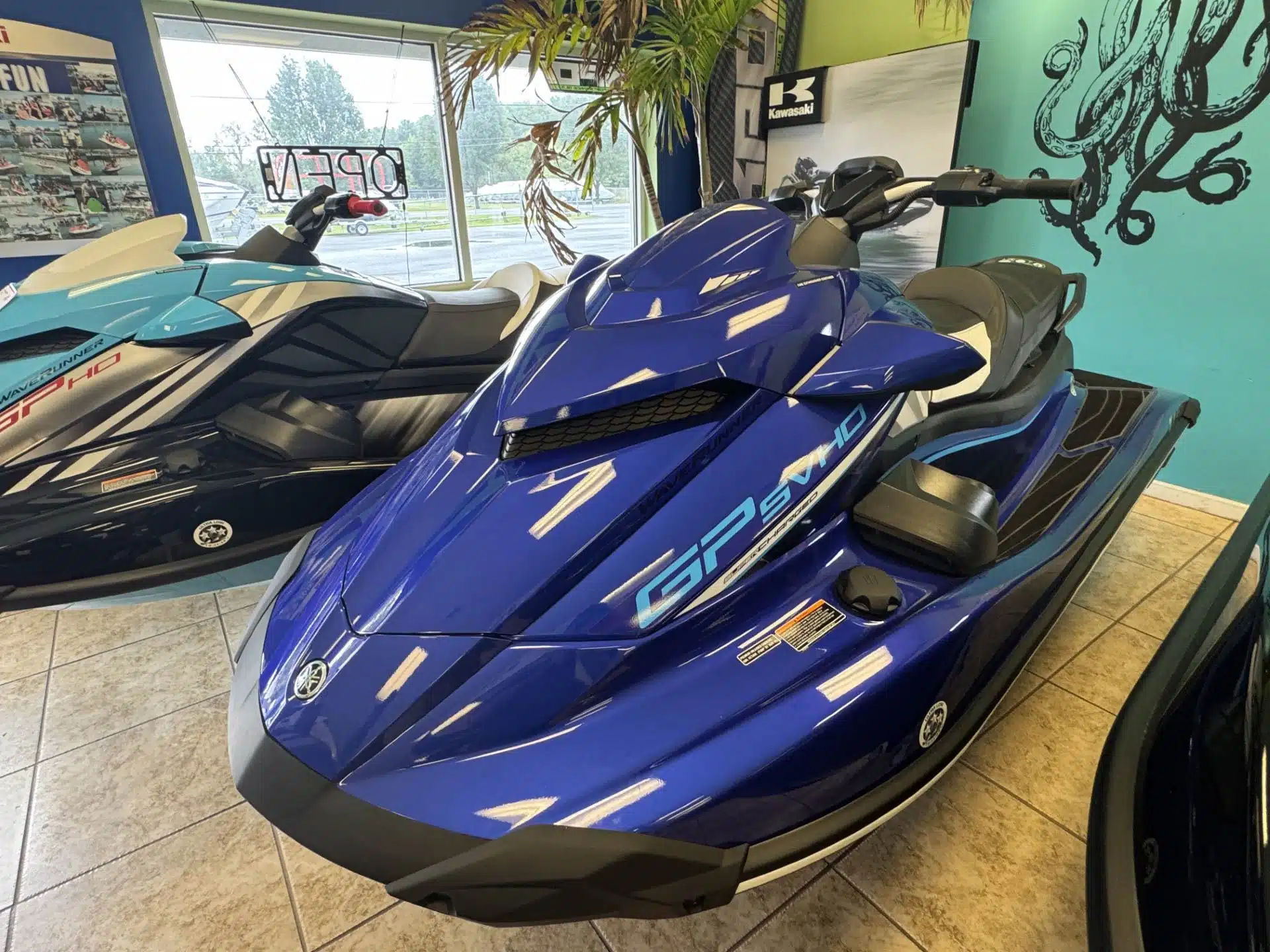 The 2024 Yamaha GP SVHO boasts a supercharged race technology making it the Choice of Champions, representing the #1 race series in the world, and race ready right out of the box. Its Yamaha 1.8L supercharged, Super Vortex High Output Marine engine delivers more power and torque than any WaveRunner before it. This unit comes with a free Waverunner start-up kit.