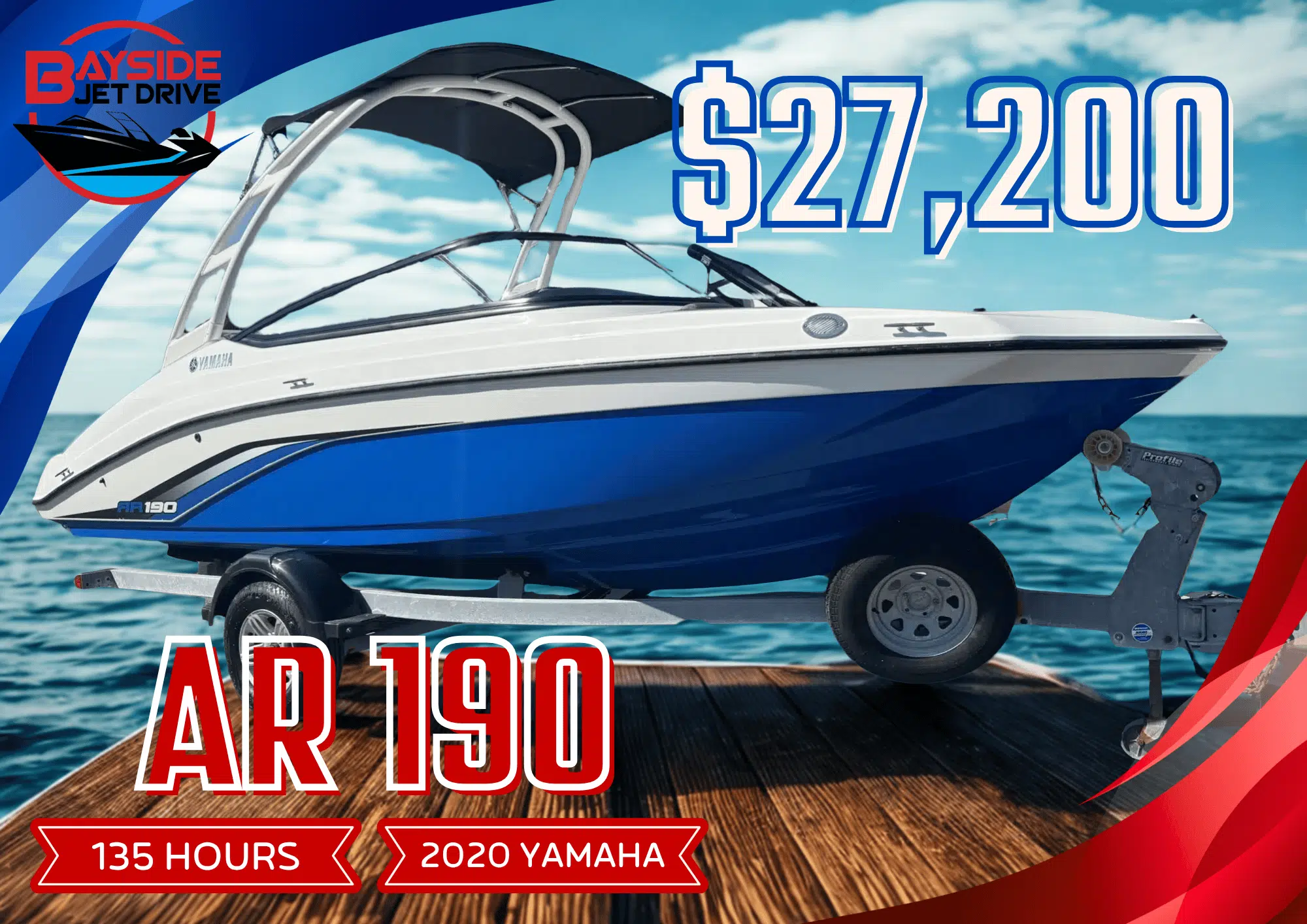 Make waves with this used 2020 Yamaha AR190, a sporty jet boat that blends Yamahaโs legendary performance with a sleek design and a custom audio experience. Perfect for families, thrill-seekers, and weekend cruisers, this AR190 has been thoughtfully upgraded to deliver more than just a rideโit delivers a vibe.
